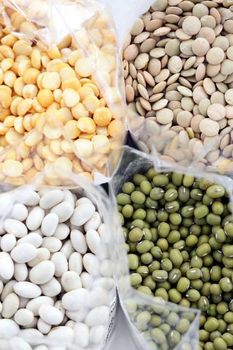 The high fiber content of pulses, the dried seeds of legumes, such as